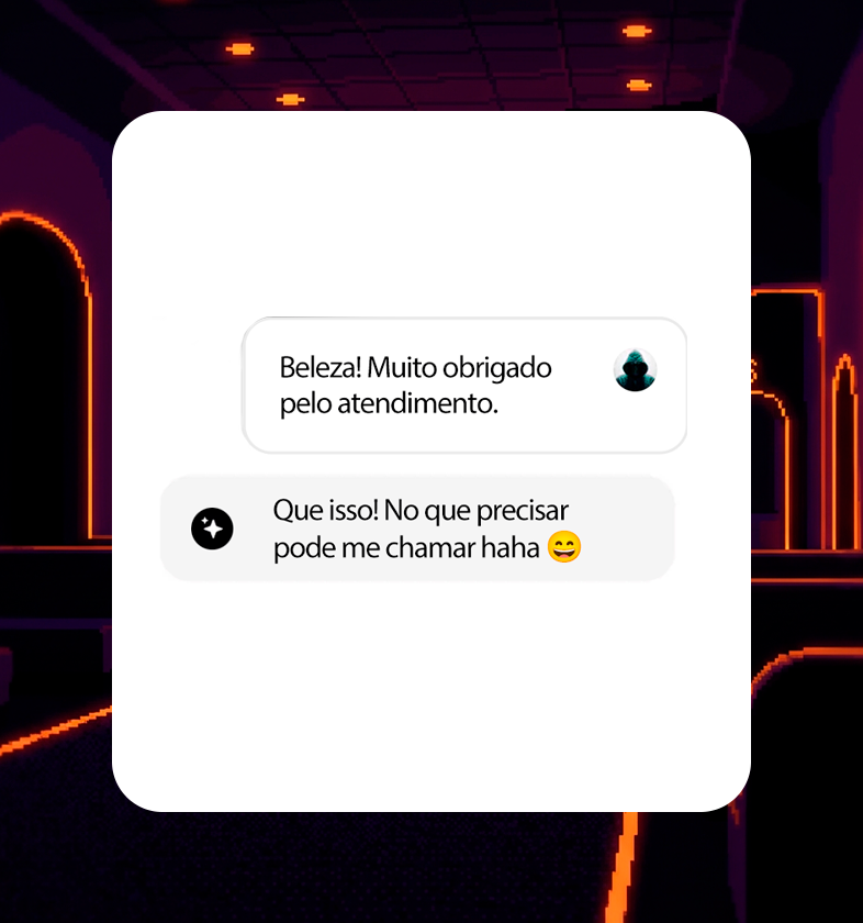 Respostas tão humanas que clientes agradecem à IA (avaliações com nota média de 4.8/5 ⭐).