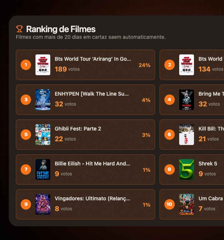 Descubra quais filmes seu público mais quer ver. Dados vindos de conversas reais, não de pesquisas.